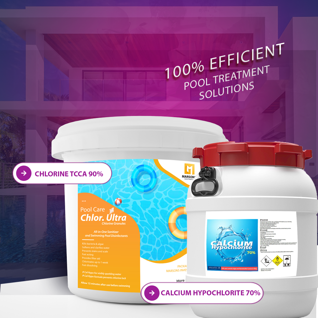 Read More...Marsons Chlor. Ultra is a stabilzed chlorine sanitizer for pool water treatment. Its long-lasting stabilized chlorine-based formula provides prolonged disinfection of pool water and destruction of bacteria.